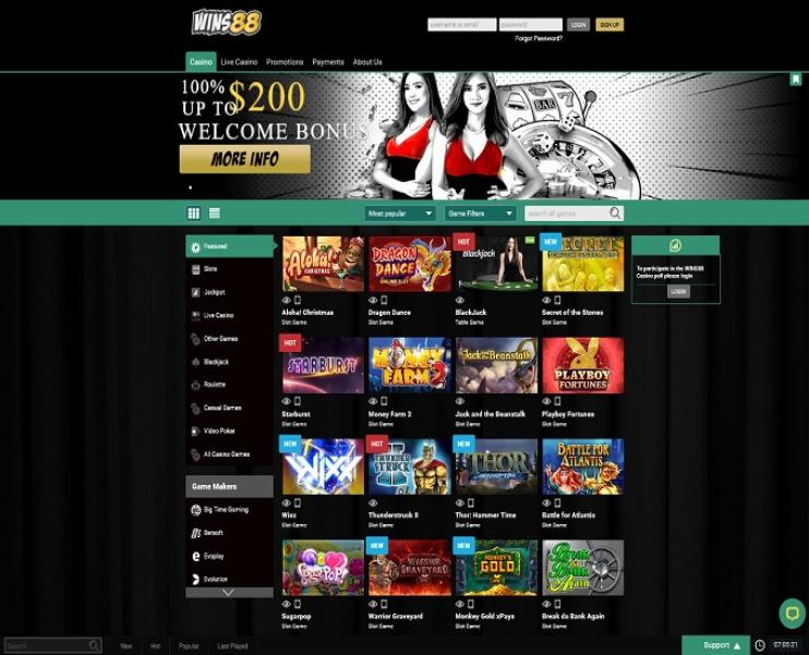 Wins88 एक पूर्ण-सेवा ऑनलाइन कैसीनो है जो खिलाड़ियों को एक लाइव डीलर अनुभाग भी प्रदान करता है जिसमें ब्लैकजैक, रूलेट, बैकारेट, ड्रीम व्हील और बहुत कुछ शामिल है।