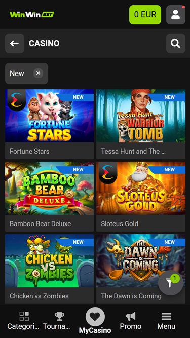 लेकिन बस इतना ही नहीं! WinWin में अतिरिक्त जीतने के अवसरों के लिए जैकपॉट्स और मेगावेज़ जैसे आकर्षक गेम मैकेनिक्स वाले गेम भी शामिल हैं। इन खंडों में कुछ सुझाए गए गेम इस प्रकार हैं: स्कारब टेम्पल, जैकपॉट हॉट एंड स्पाइसी, बुक ऑफ़ स्पेल्स 2, रैग्स टू विचेस, हॉट फ्रूट्स, मैजेस्टिक वुल्फ, 500k हीस्ट, मेगावेज़: 8 टाइगर्स गोल्ड मेगावेज़, एक्स्ट्रा जेम्स, गॉड्स ऑफ़ ओलंपस III मेगावेज़, हॉट एंड स्पाइसी मेगावेज़, 777 हॉट मेगावेज़, ट्रेजर बाउल मेगावेज़, रिच लेप्रेचुन मेगावेज़, गोल्डन ड्रैगन जैकपॉट...