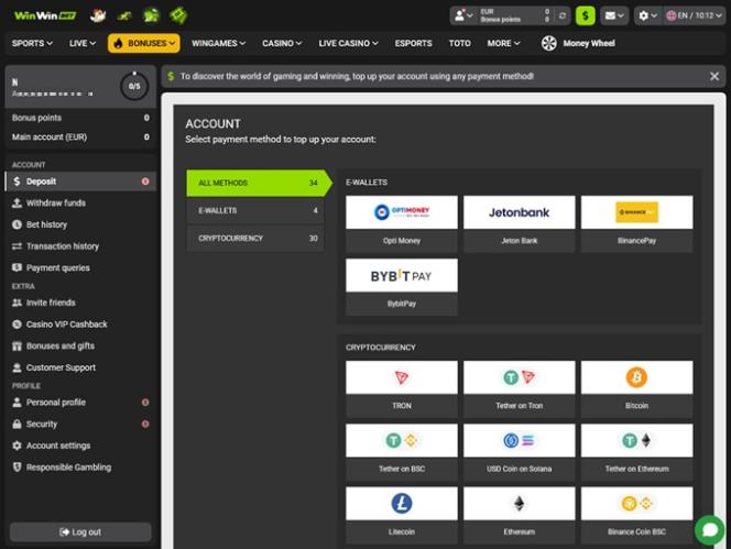 अच्छी कैसीनो सेवाओं में खिलाड़ियों को विभिन्न भुगतान विधियाँ और विश्वसनीय विकल्प प्रदान करना शामिल है। विनविन कैसीनो के मामले में, ये विकल्प बहुतायत में उपलब्ध हैं। खिलाड़ी डेबिट और क्रेडिट भुगतान कार्ड , लोकप्रिय ई-वॉलेट , अन्य ऑनलाइन बैंकिंग प्रणालियाँ और बिटकॉइन जैसी क्रिप्टोकरेंसी जैसे कई सुरक्षित विकल्पों में से चुन सकते हैं। https://wizardofodds.com/banking/bitcoin/