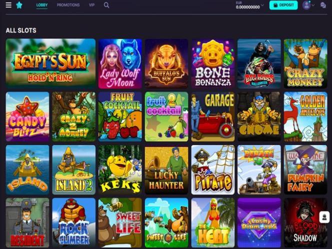 जैकपॉट अनुभाग भी कैसीनो की समृद्ध गेमिंग लाइब्रेरी में शामिल है और इसमें निम्नलिखित हिट शीर्षक शामिल हैं: इन्फर्नो डायमंड्स 100, ग्रैब द गोल्ड!, एपिक क्लोवर 40, इन्फर्नो डेविल 100, बिकिनी फ्रूट्स, रॉयल हाई-रोड, साइरन्स स्पेल, 16 कॉइन्स, टाइगर जेम्स, माइटी वाइल्ड: पैंथर, पाइरेट्स, एज़्टेक लीजेंड, बफैलो गोज़ वाइल्ड, द लिटिल प्रिंस लॉक 2 स्पिन, 5 हॉट स्ट्राइक, क्रिस्टोपिया और अन्य।