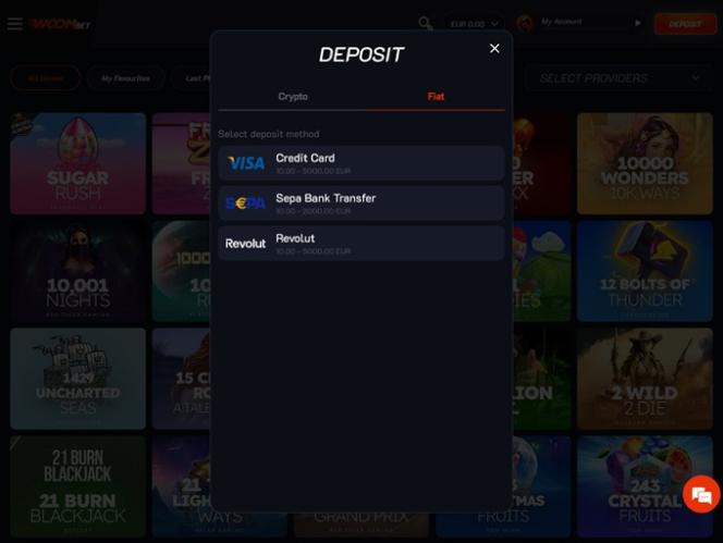 WOOM.BET Casino पर बैंकिंग विकल्प