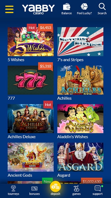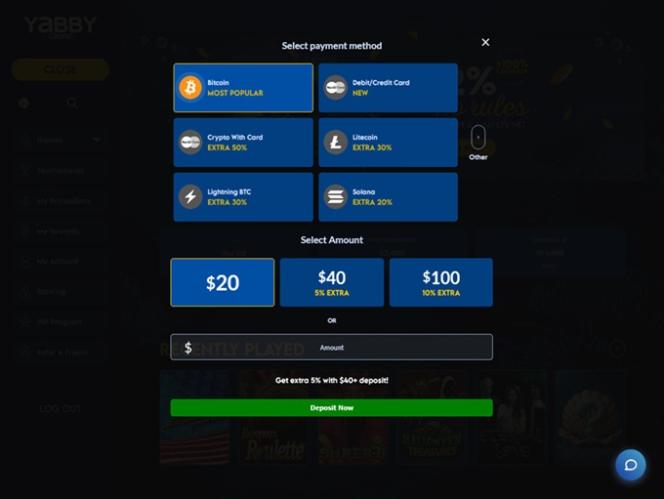 याबी कैसीनो एक ऑनलाइन सट्टेबाजी साइट है जो अमेरिकी गेमिंग बाज़ार को अपनी सेवाएँ प्रदान करती है। कुराकाओ से लाइसेंस प्राप्त, यह साइट मानक RTG गेम्स का उपयोग करती है जो अधिकांश अमेरिकी-अनुकूल कैसीनो इस्तेमाल करते हैं, लेकिन इसमें कुछ अच्छी विशेषताएँ भी हैं जो इसे दूसरों से अलग बनाती हैं। अगर आप बिटकॉइन या ई-वॉलेट का इस्तेमाल करते हैं, तो यह एक बेहतरीन साइट है, क्योंकि भुगतान बिजली की गति से किया जा सकता है। हालाँकि कुछ क्षेत्रों में सुधार किया जा सकता है (कोई ज़िम्मेदार गेमिंग जानकारी नहीं, बोनस पर कोई सट्टेबाजी की आवश्यकता नहीं), यह एक अच्छी साइट है जो आपके फ़ोन या कंप्यूटर पर आसानी से चलेगी।