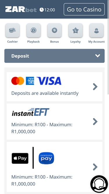 ZARbet Casino पर बैंकिंग विकल्प