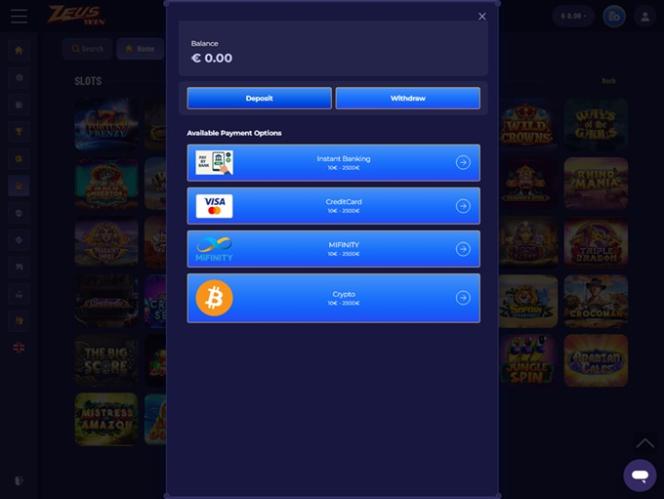 ज़ीउसविन एक विशाल ऑनलाइन कैसीनो है जो अपने खिलाड़ियों के लिए जुआ खेलों की एक विस्तृत श्रृंखला प्रस्तुत करता है, जिसमें असली पैसे वाले स्लॉट, लाइव डीलर गेम, इंस्टेंट क्रैश गेम और क्लासिक टेबल गेम की एक विस्तृत श्रृंखला शामिल है। यह ब्रांड कई बोनस से भरपूर एक विस्तृत प्रचार योजना पेश करता है और फ्रांस और पुर्तगाल के खिलाड़ियों को उनके साथ जुड़ने और सभी शानदार गतिविधियों का अनुभव करने के लिए आमंत्रित करता है।