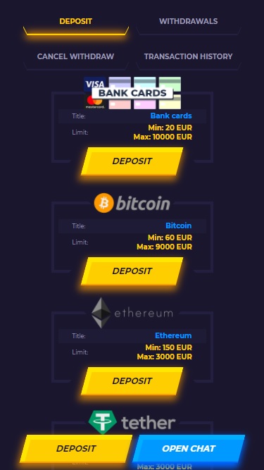 €10(E-wallets)/€20(Credit/Debit Cards)