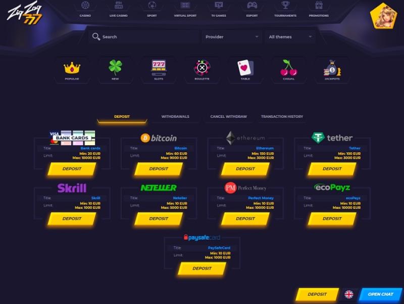 ZigZag777 Casino पर बैंकिंग विकल्प