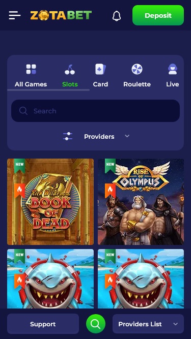लाइव कैसीनो गेम संग्रह उन खिलाड़ियों को प्रभावित करेगा जो शीर्ष रेटेड कैसीनो हिट के लाइव-डीलर संस्करण पसंद करते हैं। इन जुआरियों को ZotaBet पर इन्हें आजमाने में बहुत मज़ा आएगा: टाइगर बोनस, ब्लैकजैक वीआईपी, रूलेट 1, ऑटो रूलेट 1, ब्लैकजैक 3, ब्लैकजैक 16, ओरेकल 360, ब्लैकजैक 6, ब्लैकजैक 2, पोर्टोमासो ओरेकल रूलेट 1, एब्सोल्यूट ब्लैक, एब्सोल्यूट ब्राइट, एब्सोल्यूट ब्राउन, एब्सोल्यूट व्हाइट, बैकारेट, बैकारेट लाइव, बैकारेट 4, ब्लैकजैक 7, फैशन रूलेट, लॉबी, ओरेकल ब्लेज़, पोर्टोमासो कैसीनो, पोर्टोमासो लुमिया, पोर्टोमासो ओरेकल रूलेट 2, पोर्टोमासो वीआईपी, रूलेट लाइव, स्विंट रूलेट, एक्स बैकारेट एम1, एक्स बैकारेट एम2, एक्स बैकारेट एम3, अमेरिकन रूलेट, बॉन्ड रूलेट, लास वेगास रूलेट, जर्मेनिया ऑटो रूलेट, रूलेट 360, गोल्डन बैकारेट, गोल्डन ड्रैगन बोनस, गोल्डन सुपर सिक्स...