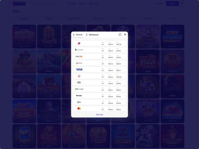 जहां तक फिएट मुद्राओं की बात है, साइट पर प्रचलित मुद्रा EUR है और यदि आप कुछ नियमित भुगतान विधियों के माध्यम से अपने बैंकिंग लेनदेन करना चाहते हैं, तो आप Apple Pay , बैंक वायर ट्रांसफर, Google Pay, Skrill, VISA और MasterCard आदि का उपयोग कर सकेंगे।