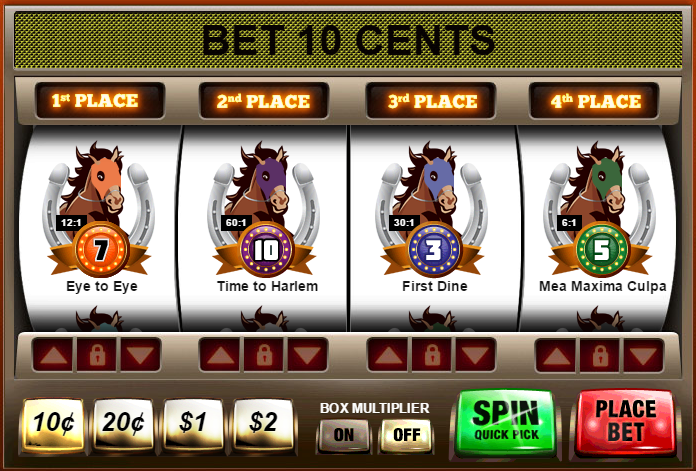 - डाइम/सुपरफेक्टा। पहले, दूसरे, तीसरे और चौथे स्थान पर आने वाले घोड़ों पर सटीक क्रम में दांव लगाएँ। खिलाड़ी इस दांव को "बॉक्स" कर सकता है, ताकि सभी 24 ऑर्डर कवर हो जाएँ।