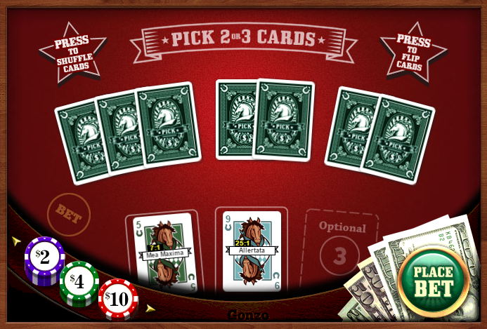 इसे और भी आसान और कम डरावना बनाने के लिए, जब कोई विदेशी दांव (एक से ज़्यादा घोड़ों पर आधारित कोई भी दांव) लगाया जाता है, तो खिलाड़ी न सिर्फ़ बेतरतीब ढंग से चुन सकता है, बल्कि उसे ऐसा करने के लिए प्रोत्साहित भी किया जाता है। उदाहरण के लिए, गोंज़ो/क्विनेला दांव में, खिलाड़ी को दो या तीन पत्ते चुनने को कहा जाता है, जो विशिष्ट घोड़ों का प्रतिनिधित्व करते हैं। अगर खिलाड़ी को मिले पत्ते पसंद नहीं आते, तो वह अपना पत्ता बदल सकता है और उसे हर दांव की पुष्टि करनी होगी। फिडी और डाइम दांव एक स्लॉट मशीन की तरह होते हैं जहाँ घूमती हुई रीलें घोड़ों का निर्धारण करती हैं। अगर खिलाड़ी को दिया गया सेट पसंद नहीं आता, तो वह रीलों को दूसरे घोड़ों पर स्विच करने के लिए हिला सकता है या फिर से घुमा सकता है। खिलाड़ी फिडी और डाइम दांव पर "बॉक्स" करने का विकल्प भी चुन सकता है, जिसका अर्थ है हर संयोजन पर दांव लगाना, ताकि उसे उन्हें बिल्कुल सही क्रम में लेने की ज़रूरत न पड़े।