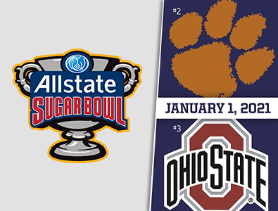 शुगर बाउल खेल में 2020-2021 कॉलेज फ़ुटबॉल प्लेऑफ़ सेमीफ़ाइनल का आयोजन ऑलस्टेट द्वारा किया जा रहा है। यह बहुप्रतीक्षित ग्रिडिरॉन मुकाबला शुक्रवार, 1 जनवरी, 2021 को पूर्वी समयानुसार सुबह 8:00 बजे होगा। क्लेम्सन टाइगर्स (#2) और ओहायो स्टेट बकीज़ (#3) के बीच यह मुकाबला न्यू ऑरलियन्स, लुइसियाना स्थित मर्सिडीज़-बेंज सुपरडोम में होगा, जो NFL के न्यू ऑरलियन्स सेंट्स का घरेलू मैदान है। इस मैच का राष्ट्रीय प्रसारण ESPN द्वारा किया जाएगा, या इसे ESPN ऐप के ज़रिए स्ट्रीम किया जा सकता है।