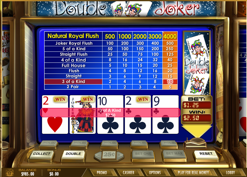 | जोकर पोकर | 1000-200-100-50-17-7-5-3-2-1-1 | 98.60% |