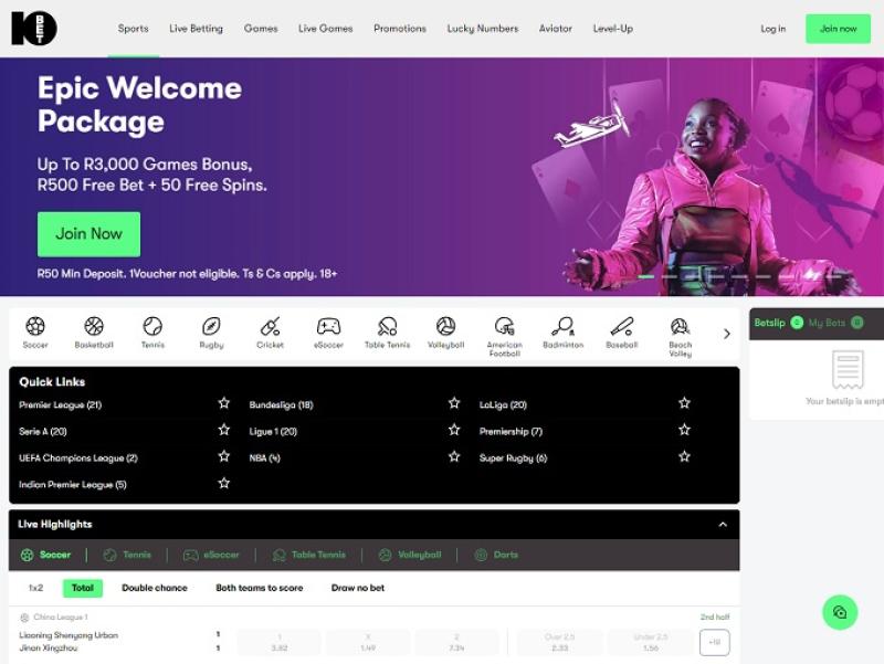 एक व्यापक इतिहास और दो दशकों से ज़्यादा के अनुभव के साथ, 10bet अफ्रीका दक्षिण अफ़्रीकी खिलाड़ियों के लिए एक प्रमुख स्पोर्ट्स बेटिंग वेबसाइट है। इस ब्रांड में 60 से ज़्यादा खेलों पर दांव लगाने के लिए एक व्यापक स्पोर्ट्सबुक है, जो अनुकूल ऑड्स, व्यापक बेटिंग विकल्प और इन-प्ले बेटिंग के लिए लाइव बेटिंग सुविधाएँ प्रदान करता है।