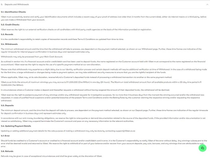खिलाड़ियों की संतुष्टि सुनिश्चित करने और एक सुखद सट्टेबाजी अनुभव प्रदान करने के लिए, 10bet अफ्रीका की ग्राहक सहायता टीम आपके किसी भी प्रश्न या चिंता में आपकी सहायता के लिए मौजूद है, और आप ईमेल भेजकर, लाइव चैट सुविधा का उपयोग करके, या सीधे टेलीफोन लाइन पर फोन करके प्रतिनिधि से संपर्क कर सकते हैं।
