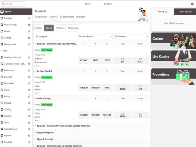 सभी बातों को ध्यान में रखते हुए, शुरुआती और अनुभवी स्पोर्ट्स बेटर्स, दोनों को सभी उपलब्ध विकल्पों को ब्राउज़ करने का एक शानदार अनुभव होगा। स्पोर्ट्सबुक अत्यधिक विस्तृत है, सैकड़ों इवेंट्स प्रदर्शित करता है और अनुकूल ऑड्स प्रदान करता है, शायद यही वजह है कि यह ब्रांड इतने लंबे समय से मौजूद है।