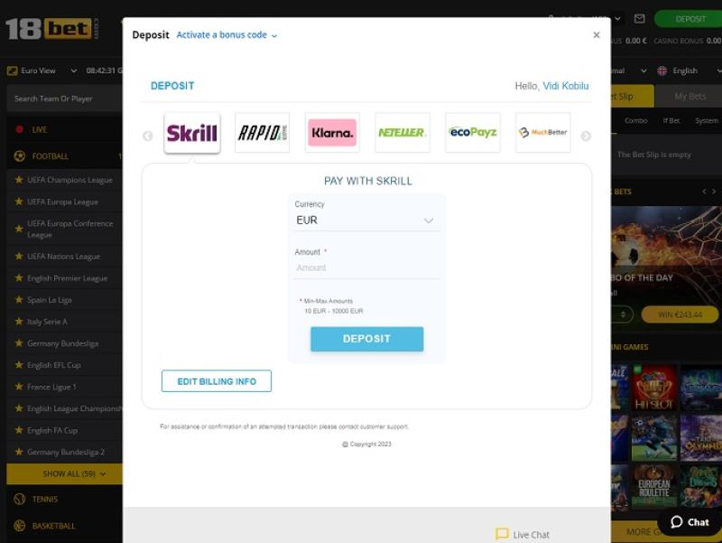 कृपया ध्यान दें: जमा राशि को कम से कम पाँच बार दांव पर लगाना होगा, उसके बाद ही शेष राशि नकद निकालने के लिए उपलब्ध होगी। वर्तमान जमा/निकासी सीमा और संबंधित शुल्कों की सूची के लिए नियम और शर्तें देखें।