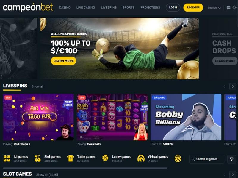 खेल सट्टेबाजी सेवाओं के अलावा, कैंपियन बेट एक बेहतरीन ऑनलाइन कैसीनो भी प्रदान करता है जो पोकर, बैकारेट, ब्लैकजैक, हाई लो, रॉकेट डाइस, पोकर, रूलेट, स्लॉट्स, प्लिंको, स्क्रैच डाइस, टेबल गेम्स, वीडियो बिंगो, क्रेप्स, वीडियो पोकर, वीडियो स्लॉट्स और अन्य टेबल गेम्स सहित कैसीनो गेम्स प्रदान करता है। उनके पास लाइव कैसीनो विकल्प भी है। ये उन लोगों के लिए बेहतरीन गेमिंग विकल्प हैं जो अपने खेल दांव लगाते समय अपने क्लासिक कैसीनो गेम्स उपलब्ध कराना चाहते हैं। इस स्पोर्ट्सबुक/कैसीनो को अपनी सभी सट्टेबाजी मनोरंजन आवश्यकताओं और इच्छाओं के लिए एक ही स्थान पर उपलब्ध मानें।