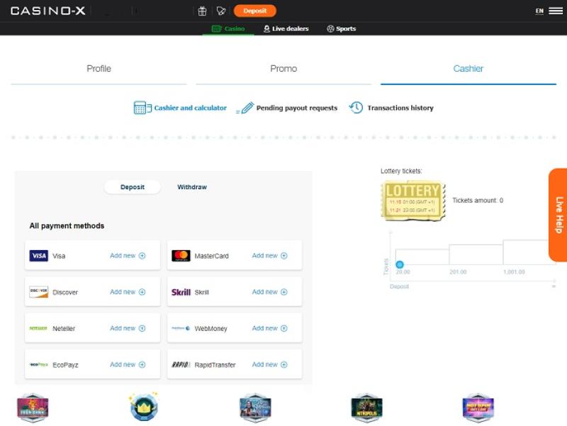 आधुनिक स्पोर्ट्सबुक्स के लिए बड़े दर्शकों को आकर्षित करने का एक सबसे आसान तरीका उन्हें जमा और निकासी के लिए ढेर सारे भुगतान विकल्प प्रदान करना है। कैसीनो-एक्स टीम इसे समझती है, यही वजह है कि यहाँ खिलाड़ी अपने धन का प्रबंधन करने के लिए कई बैंकिंग विकल्पों का उपयोग कर सकते हैं, जिनमें क्रेडिट कार्ड, डेबिट कार्ड, इलेक्ट्रॉनिक वॉलेट, प्रीपेड कार्ड, वाउचर, बैंक ट्रांसफर और यहाँ तक कि आधुनिक क्रिप्टो विकल्प भी शामिल हैं।