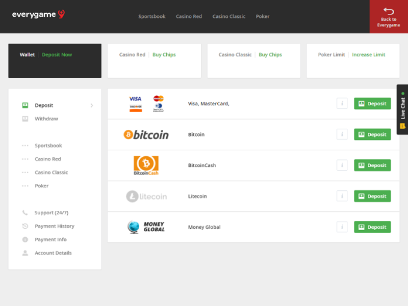एवरी गेम स्पोर्ट्सबुक के पास अपने ग्राहकों के लिए बैंकिंग विकल्पों की एक विस्तृत श्रृंखला है, चाहे वे अपने खाते में मुद्रा जमा कर रहे हों या निकाल रहे हों।