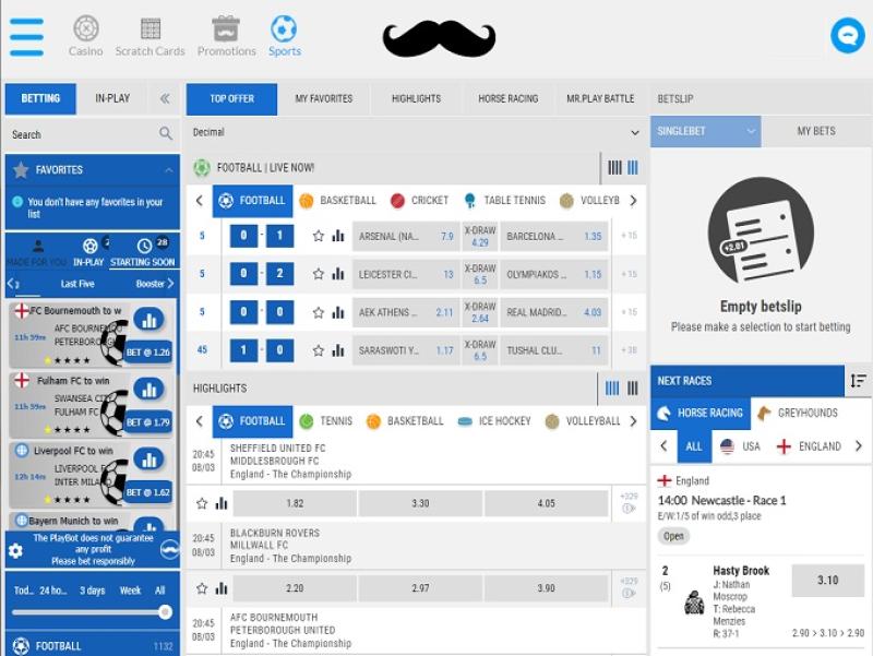 गेमर्स को मिस्टर प्ले स्पोर्ट्सबुक के माध्यम से दांव लगाने के लिए खेलों की इतनी अच्छी विविधता के साथ-साथ प्रत्येक खेल और / या घटना के लिए विशिष्ट प्रकार के दांवों की एक विस्तृत चयन से आश्चर्य होगा।