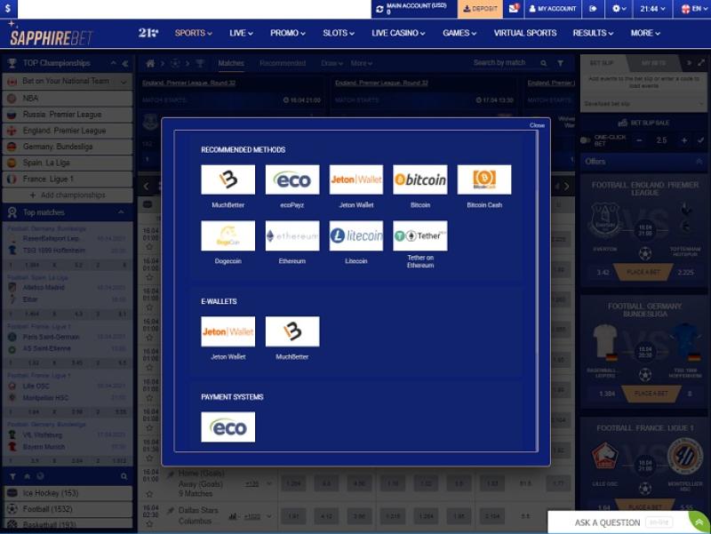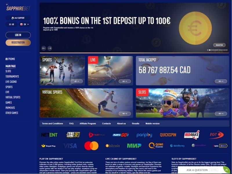 हर्मीस कंसल्टिंग के स्वामित्व और संचालन वाली, सैफायरबेट ने 2018 में कुराकाओ ऑनलाइन गेमिंग लाइसेंस के तहत अपनी स्पोर्ट्सबुक और कैसीनो लॉन्च की। पहली नज़र में, यह ब्रांड एक बेहद आशाजनक सट्टेबाज है जो 60 से ज़्यादा समर्थित भाषाओं, राष्ट्रीय टीमों पर प्रतिस्पर्धी ऑड्स, विशेष रूप से स्पोर्ट्सबुक के लिए तैयार किए गए प्रमोशन और एक समग्र रूप से आकर्षक वेब डिज़ाइन के साथ सट्टेबाजों की सूची में कई ज़रूरी चीज़ें पूरी करता है।