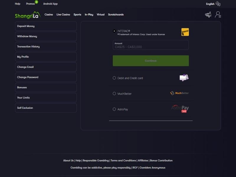 ShangriLa Live Casino पर बैंकिंग विकल्प