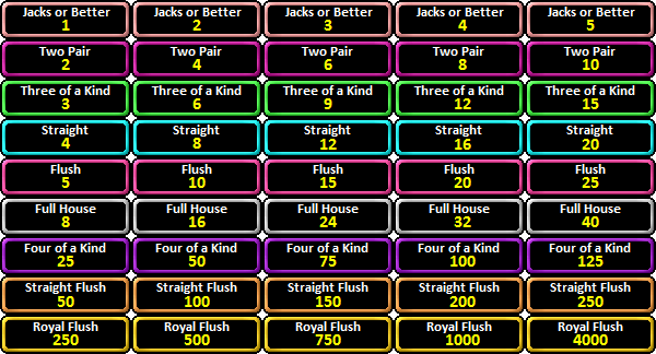 - खेल में एक ही डेक से पांच वीडियो पोकर हाथों का वितरण किया जाएगा, प्रत्येक पंक्ति में एक।