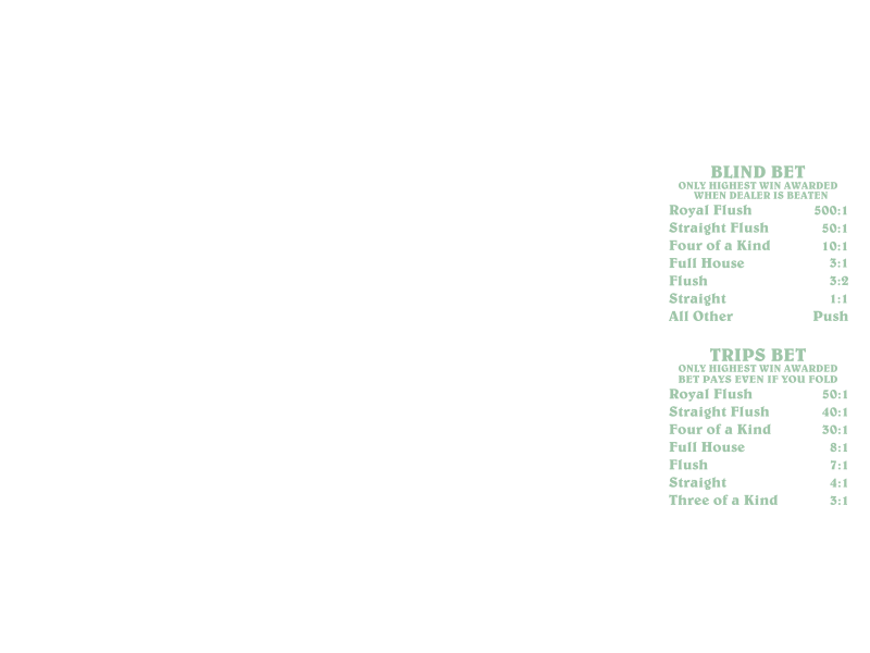 рдмреНрд▓рд╛рдЗрдВрдб рдмреЗрдЯ рдСрдбреНрд╕ : рдмреНрд▓рд╛рдЗрдВрдб рдмреЗрдЯ рдЦрд┐рд▓рд╛рдбрд╝реА рдХреЗ рдЕрдВрддрд┐рдо рд╣рд╛рде рдХреА рддрд╛рдХрдд рдХреЗ рдЖрдзрд╛рд░ рдкрд░ рднреБрдЧрддрд╛рди рдХрд░рддреА рд╣реИ, рдЬрд┐рд╕рдореЗрдВ рд╕реНрдЯреНрд░реЗрдЯ, рдлреНрд▓рд╢ рдпрд╛ рдЙрд╕рд╕реЗ рдмреЗрд╣рддрд░ рдЬреИрд╕реЗ рд╣рд╛рде рдЬрд╝реНрдпрд╛рджрд╛ рднреБрдЧрддрд╛рди рдЕрд░реНрдЬрд┐рдд рдХрд░рддреЗ рд╣реИрдВред рдЙрджрд╛рд╣рд░рдг рдХреЗ рд▓рд┐рдП, рдПрдХ рд╕реНрдЯреНрд░реЗрдЯ рдЖрдорддреМрд░ рдкрд░ 1:1 рдХреЗ рдЕрдиреБрдкрд╛рдд рдореЗрдВ рднреБрдЧрддрд╛рди рдХрд░рддрд╛ рд╣реИ, рдЬрдмрдХрд┐ рдПрдХ рд░реЙрдпрд▓ рдлреНрд▓рд╢ 500:1 рдХреЗ рдЕрдиреБрдкрд╛рдд рдореЗрдВ рднреБрдЧрддрд╛рди рдХрд░ рд╕рдХрддрд╛ рд╣реИ , рдЬреЛ рдСрдирд▓рд╛рдЗрди рдХреИрд╕реАрдиреЛ рдХреА рднреБрдЧрддрд╛рди рддрд╛рд▓рд┐рдХрд╛ рдкрд░ рдирд┐рд░реНрднрд░ рдХрд░рддрд╛ рд╣реИред