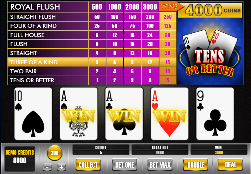बेटकंस्ट्रक्ट वीडियो पोकर के चार लोकप्रिय संस्करण प्रतिस्पर्धी भुगतान तालिकाओं के साथ पेश करता है, जिनका रिटर्न 98.98% से 99.54% तक होता है। हालाँकि, स्लॉट्स की तरह, ये भी लगभग दो दशक पुराने लगते हैं।