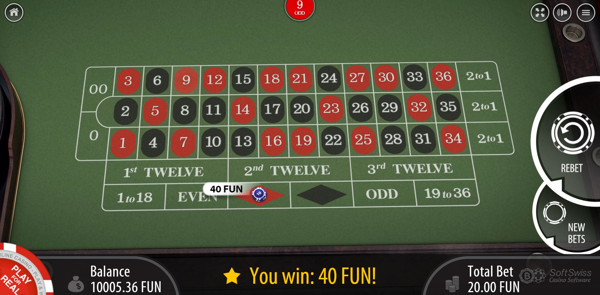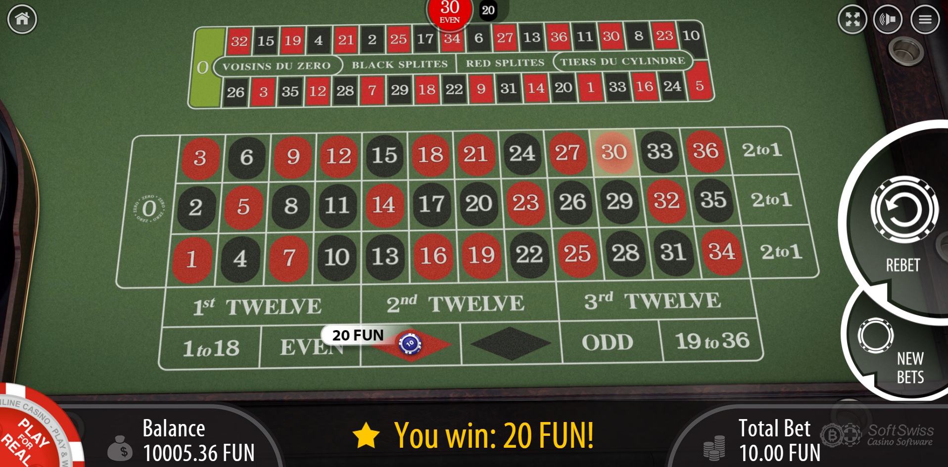 BGaming में तीन रूलेट गेम हैं। लगता है ये स्क्रीनशॉट लेने के बाद मेरे नोट्स कहीं खो गए हैं और अब मैं गेम नहीं चला पा रहा हूँ। मैं दो शून्य और 5.26% हाउस एज वाले अमेरिकी रूलेट से दूर रहूँगा। यूरोपियन और फ्रेंच रूलेट में एक शून्य होने और गेंद के उसमें गिरने पर सम राशि के दांव पर सब कुछ हारने की संभावना समान है, और हाउस एज 2.70% है।