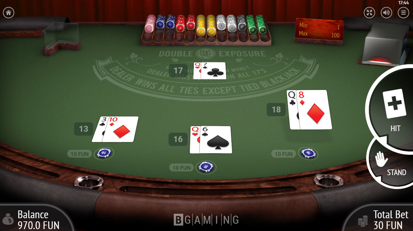 - डीलर सॉफ्ट 17 पर खड़ा है