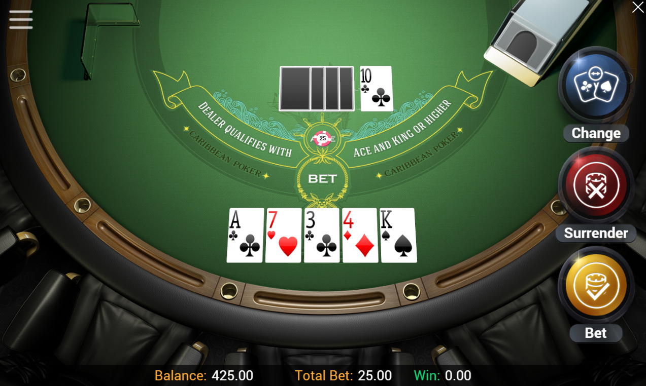 कैरेबियन स्टड के लिए भी वही 1-2-3-4-5-7-20-50-100 पे टेबल इस्तेमाल की जाती है। सही रणनीति के साथ, जिसमें स्विचिंग भी शामिल है, एंटे बेट के आधार पर हाउस एज 1.04% कम है।