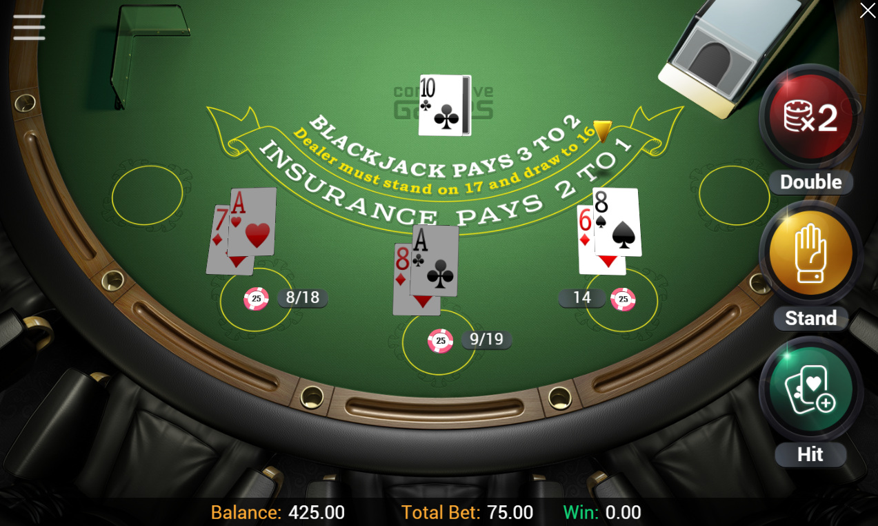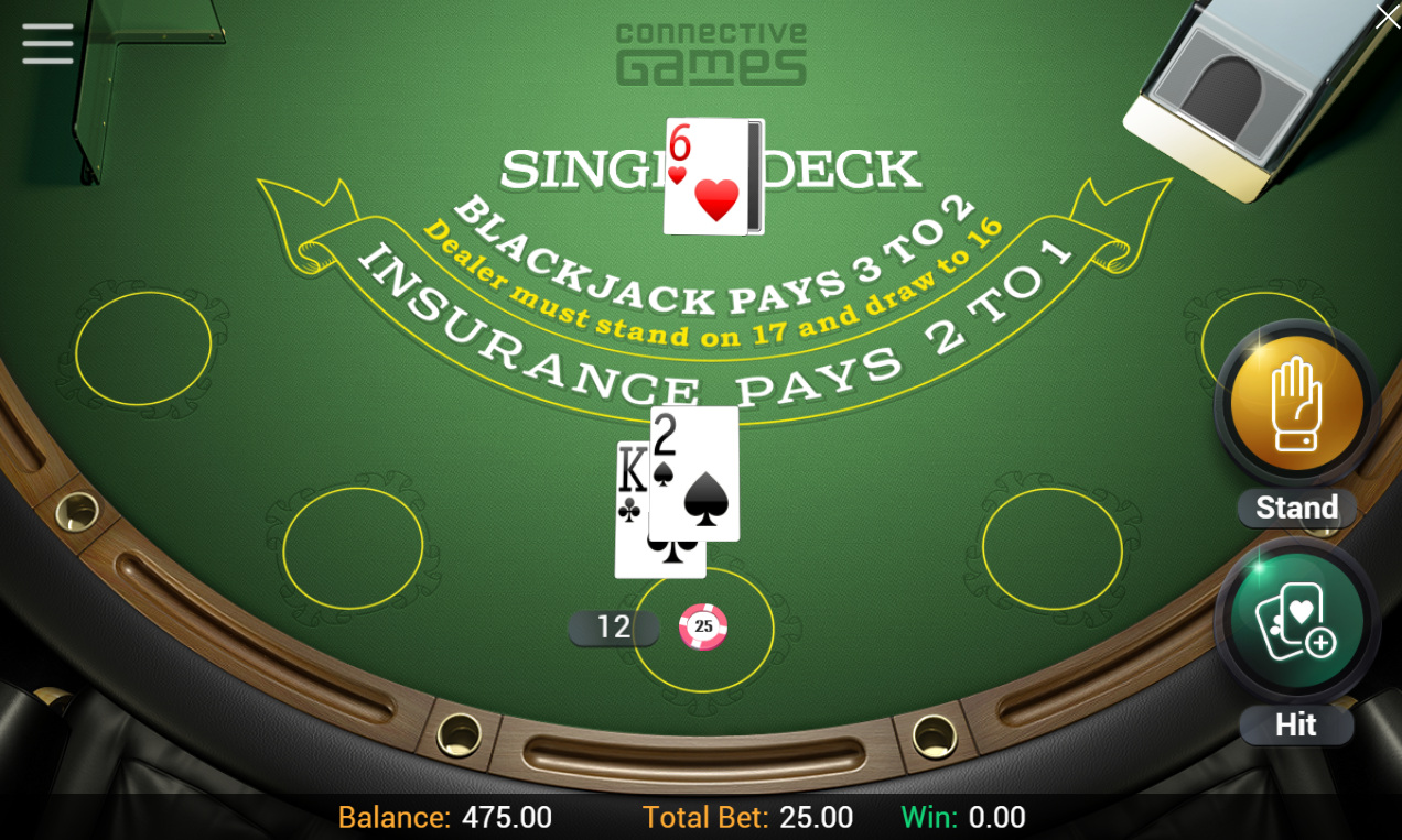 चुनने के लिए चार ब्लैकजैक गेम उपलब्ध हैं, लेकिन ऑड्स के लिहाज़ से सबसे अच्छा सिंगल-डेक गेम है, जिसमें हाउस एज 0.28% कम है। सिंगल-डेक गेम की मूल रणनीति इस प्रकार है।