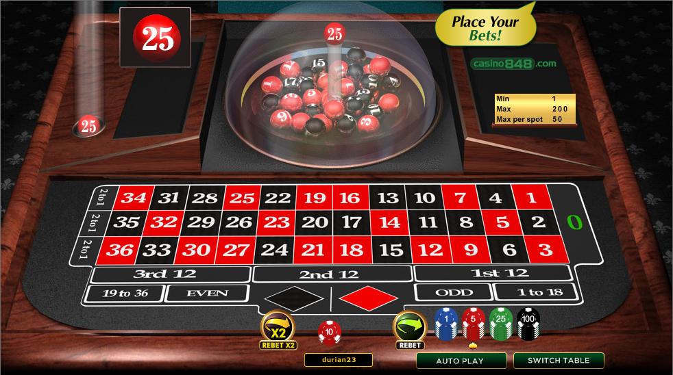 3-डी रूलेट - एकल-शून्य पहिया। 2.70% का हाउस एज।