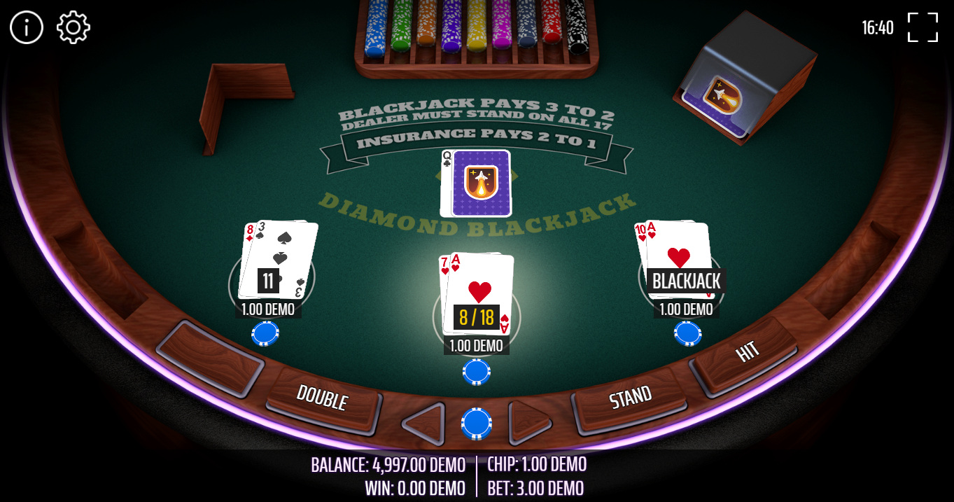 ब्लैकजैक गेम में तीन बेटिंग स्पॉट होते हैं और मैं कहूँगा कि ये नियम इस उद्योग के लिए औसत हैं। मेरा ब्लैकजैक हाउस एज कैलकुलेटर 0.40% हाउस एज दिखाता है, हालाँकि गेम हेल्प फ़ाइल 0.35% का दावा करती है। आप चुन सकते हैं कि किस पर विश्वास करना है।