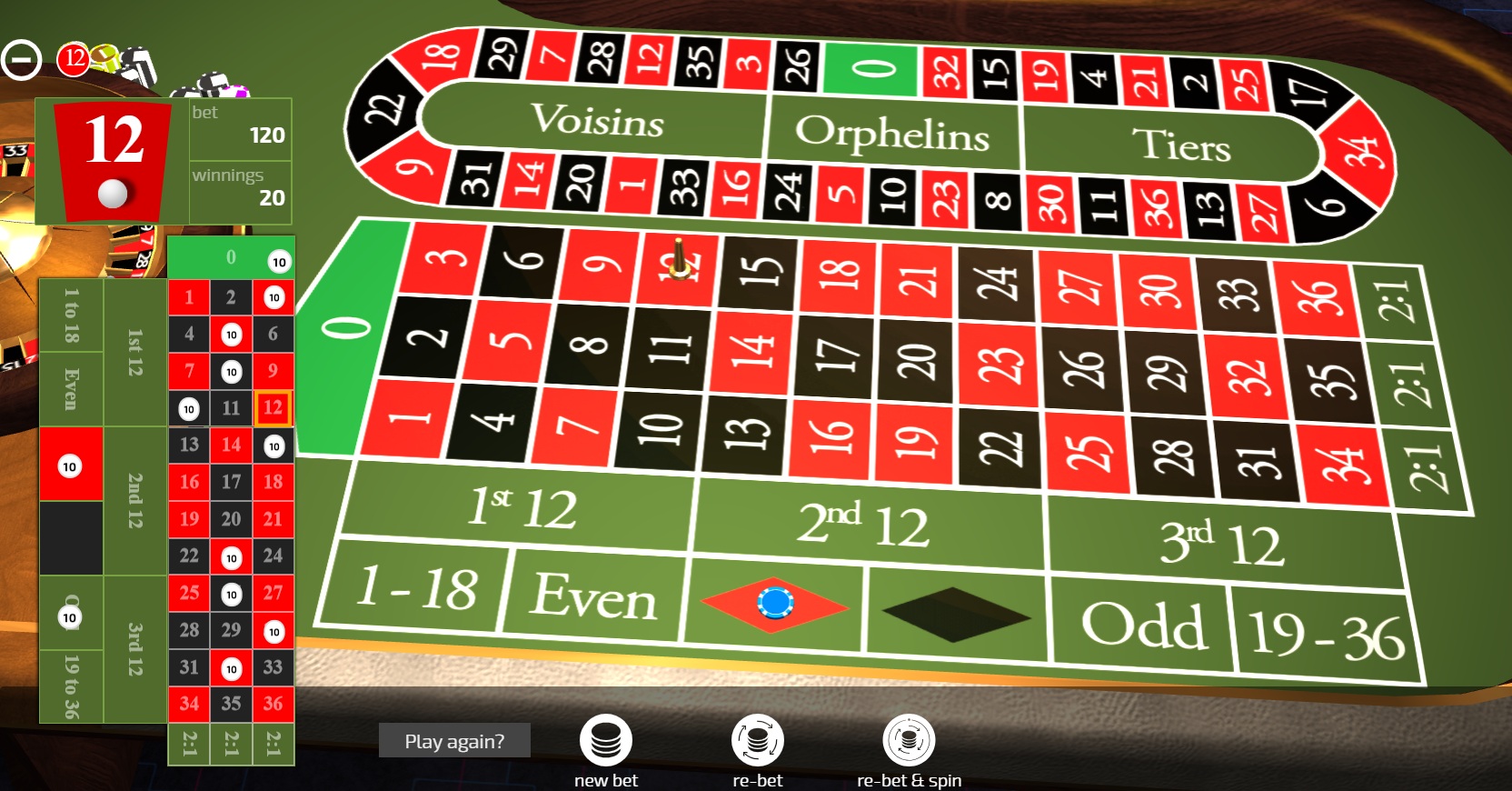 रूलेट एकल-शून्य पहिये पर खेला जाता है, जिसके परिणामस्वरूप प्रत्येक दांव पर 2.70% का हाउस एज होता है।