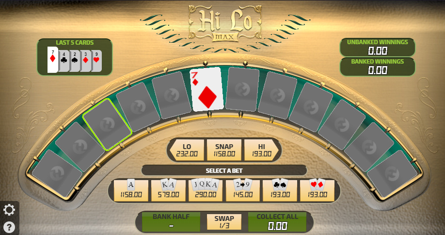 हाई लो मैक्स एक सरल खेल है जो 12 पत्तों वाले डेक से निकाले गए पत्ते की भविष्यवाणी पर आधारित है। इसका अधिकतम रिटर्न 96.67% है। सभी नियमों और विश्लेषण के लिए, कृपया हाई लो मैक्स पर मेरा पेज देखें।