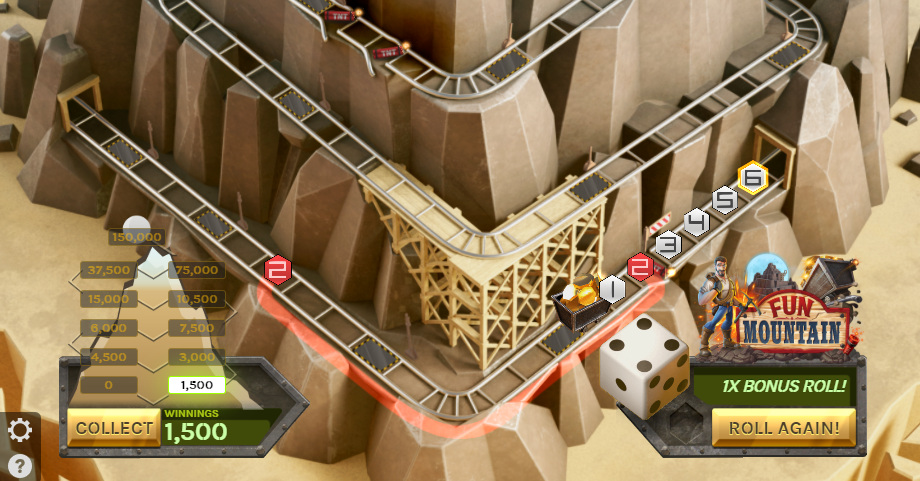 फन माउंटेन में एक पासा फेंककर एक खनन गाड़ी को पहाड़ पर पटरियों की तीन परतों पर चलाना शामिल है। नियम थोड़े जटिल हैं, इसलिए अगर मैं गणित में ज़्यादा उलझा न रहूँ तो माफ़ करना। हेल्प फ़ाइल में बताया गया है कि अपेक्षित रिटर्न 95.52% है।