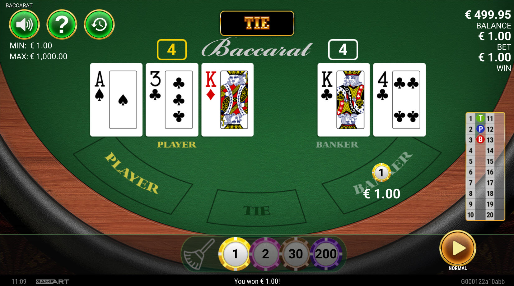 बैकारेट का खेल बहुत सरल था। मुख्य तीन दांव सामान्य ऑड्स पर लगाए जाते थे - प्लेयर, बैंकर और टाई।