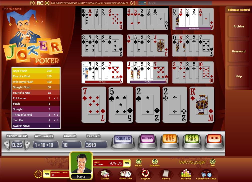 | Joker Poker (kings or better) | 97.33% | हाँ | 1-1-2-3-5-7-18-50-100-150-250 | नहीं |