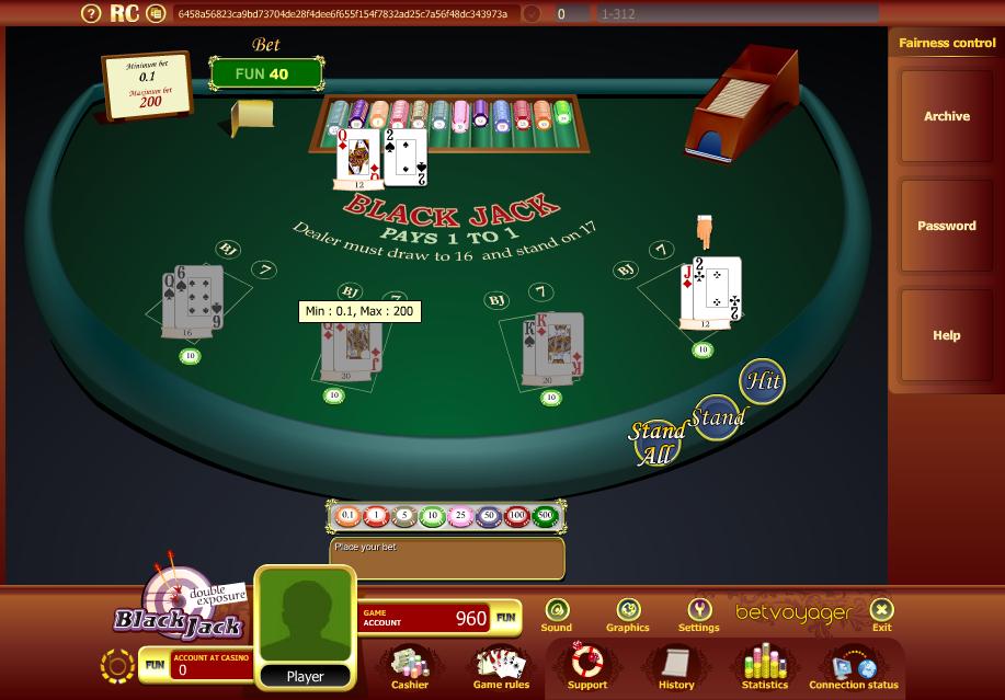 - यह कहने की ज़रूरत नहीं कि खिलाड़ी हाथों के बीच कार्ड बदल सकता है और डीलर के 22 के कुल योग पर जीत की बजाय पुश मिलेगा। अगर आप इस खेल से परिचित नहीं हैं, तो कृपया मेरा ब्लैकजैक स्विच पेज देखें।