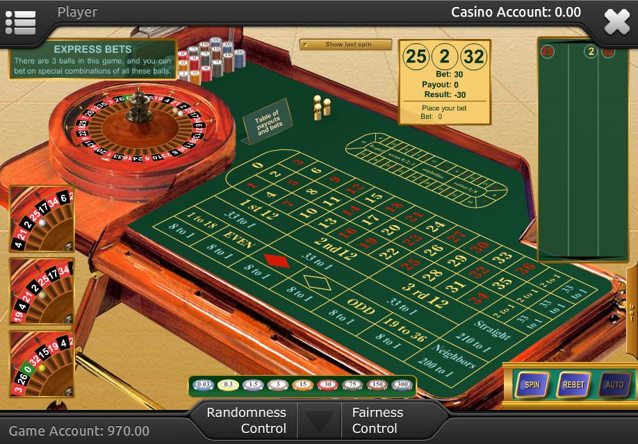 रूलेट एक्सप्रेस — यह खेल मल्टीबॉल रूलेट जैसा ही है, सिवाय इसके कि इसमें खिलाड़ी तीनों गेंदों के परिणाम के आधार पर पार्ले बेट लगा सकता है, जिसे "एक्सप्रेस बेट्स" कहा जाता है। उदाहरण के लिए, लाल रंग पर एक्सप्रेस बेट लगाने पर 8 से 1 का भुगतान होता है और अगर तीनों गेंदें लाल रंग में गिरती हैं तो खिलाड़ी जीत जाता है। कृपया ध्यान दें कि प्रत्येक गेंद एक अलग संख्या में गिरती है।