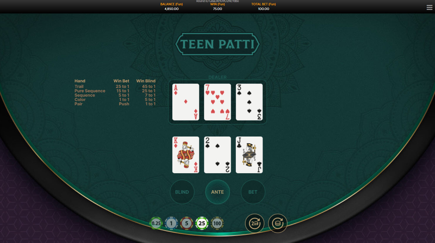 तीन पत्ती एक आसान खेल है जिसमें खिलाड़ी इस बात पर दांव लगाता है कि तीन पत्तों वाले दो हाथों में से किसका पोकर मूल्य ज़्यादा होगा। बेशक, इसमें कुछ अतिरिक्त दांव भी होते हैं। मैंने यह खेल पहले कभी नहीं देखा था, इसलिए इसके लिए एक नया पेज बनाया है। सभी नियमों और विश्लेषण के लिए, कृपया तीन पत्ती 20-20 पर मेरा पेज देखें।