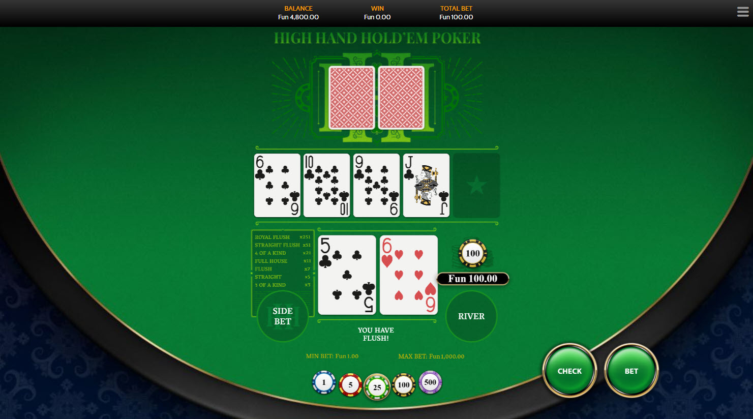 वनटच, होल्ड 'एम पोकर और हाई हैंड होल्ड 'एम नामों से टेक्सास होल्ड 'एम बोनस प्रदान करता है। मैं खेलों को उनके मूल नामों से ही संदर्भित करना पसंद करता हूँ। वे लास वेगास के उदार नियमों का पालन करते हैं, जहाँ एंटे पर जीतने के लिए स्ट्रेट या उससे बेहतर दांव लगाना ज़रूरी है, जिसमें 2.04% का हाउस एज और 0.53% का जोखिम शामिल है।