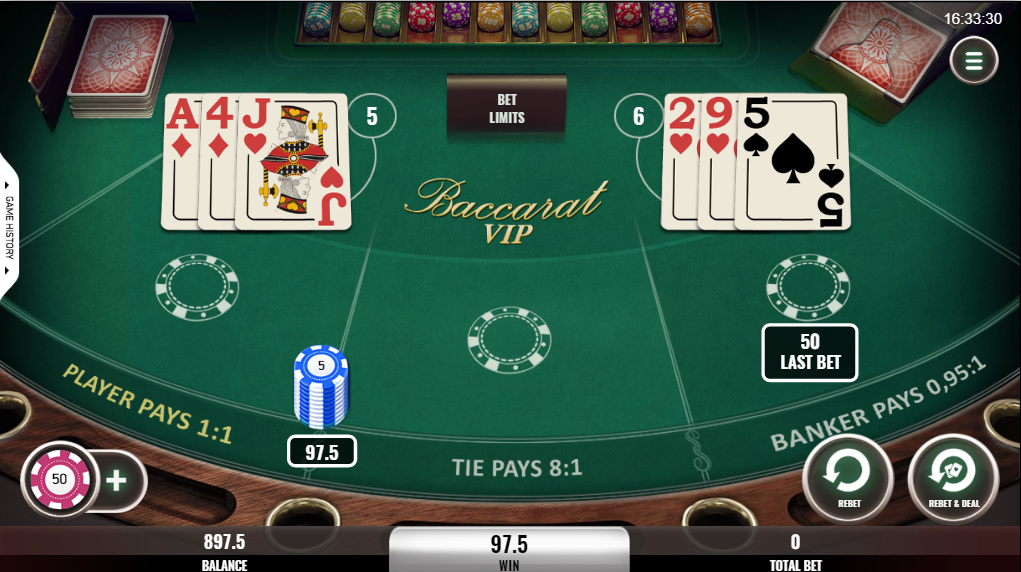 दोनों बैकारेट खेल मानक नियमों का पालन करते हैं, जिसमें बैंकर दांव पर 5% कमीशन होता है और टाई पर 8 से 1 का भुगतान होता है। कोई साइड दांव नहीं।
