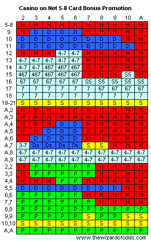 कैसीनो ऑन नेट ने दो बार एक प्रमोशन भी पेश किया है जिसमें 5 या उससे ज़्यादा पत्तों वाले और बस्ट न होने वाले किसी भी हाथ को बोनस मिलता है। 5 पत्तों के लिए बोनस दांव का आधा होता है, 6 पत्तों के लिए बोनस दांव के बराबर होता है, 7 पत्तों के लिए बोनस दांव के पाँच गुना के बराबर होता है, और 8 पत्तों के लिए बोनस दांव के 50 गुना के बराबर होता है। कैसीनो ऑन नेट के कर्मचारियों ने मुझे बताया कि यह नियम स्प्लिट से बने हाथों पर भी लागू होता है। दुर्भाग्य से, इस प्रमोशन के लिए सॉफ़्टवेयर स्वचालित रूप से सॉफ्ट 21 पर रहता है। अगर खिलाड़ी इस प्रमोशन के लिए डिज़ाइन की गई परफेक्ट कंपोज़िशन-आधारित रणनीति अपनाता है, तो उसे 0.55% की बढ़त मिलेगी।