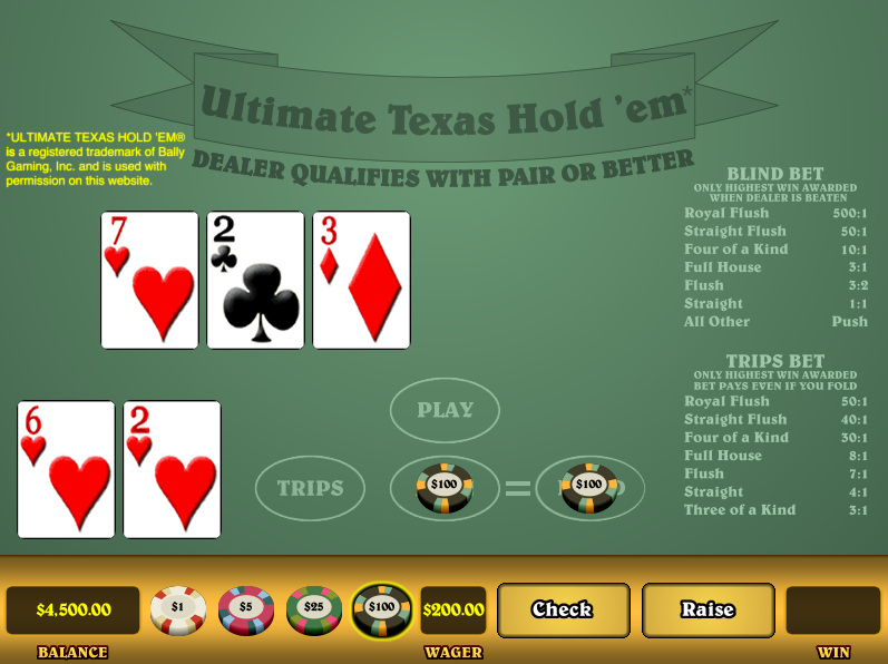 टेक्सास होल्ड 'एम बोनस पोकर का एक और प्रकार है जहाँ लक्ष्य डीलर से बेहतर हाथ हासिल करना होता है। यह गेम आपको शुरुआती दांव बढ़ाने के तीन मौके देता है, इसलिए अंतिम दांव अक्सर शुरुआती दांव का एक बड़ा गुणक होता है।