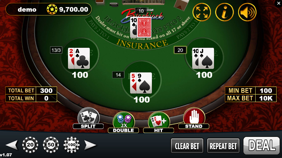 | American Blackjack | 1.5 | खड़ा होना | हाँ | कोई भी 2 | 1 | नहीं | नहीं | हाँ | नहीं | 99.60% | 4 | नहीं |