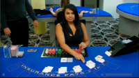 डीलर किसी तरह देख सकते हैं कि खिलाड़ी टेक्स्ट बॉक्स में क्या टाइप कर रहे हैं और वे मौखिक रूप से जवाब देते हैं। कभी-कभी डीलर केवल अंग्रेज़ी में बोलते हैं और कभी-कभी अंग्रेज़ी और स्पेनिश में। मैंने पाया है कि अंग्रेज़ी हमेशा धाराप्रवाह होती है, हालाँकि डीलर आमतौर पर खिलाड़ियों का अभिवादन करने और खेल के बारे में जानकारी देने के अलावा ज़्यादा कुछ नहीं कहते।