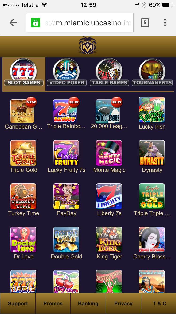 Miami Club Casino एक और कैसीनो का उदाहरण है जहाँ आपको Wizard of Odds विज्ञापन गारंटी मिलेगी। एक बार फिर, मोबाइल पर गेम्स की पूरी श्रृंखला उपलब्ध नहीं है, जैसा कि पीसी पर होती है। उदाहरण के लिए, टेबल गेम्स के अंतर्गत, Blackjack के चार संस्करणों सहित कुल छह गेम ही दिखाई देते हैं, और किसी कारण से, उनमें Keno भी शामिल है, जिसे मैं टेबल गेम नहीं मानूँगा। Miami क्लब साइट पर तीन गुना से भी ज़्यादा गेम उपलब्ध हैं।